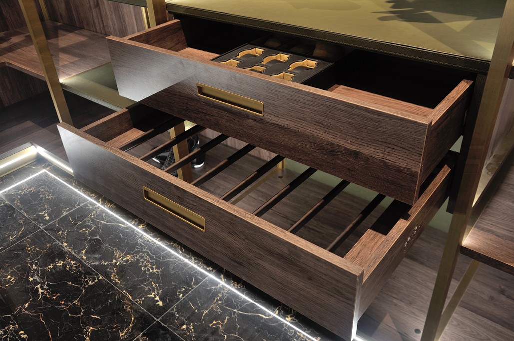 工艺:金色铝框+背板\玻璃背板+木层板\玻璃层板\皮纹层板门型:玻璃门